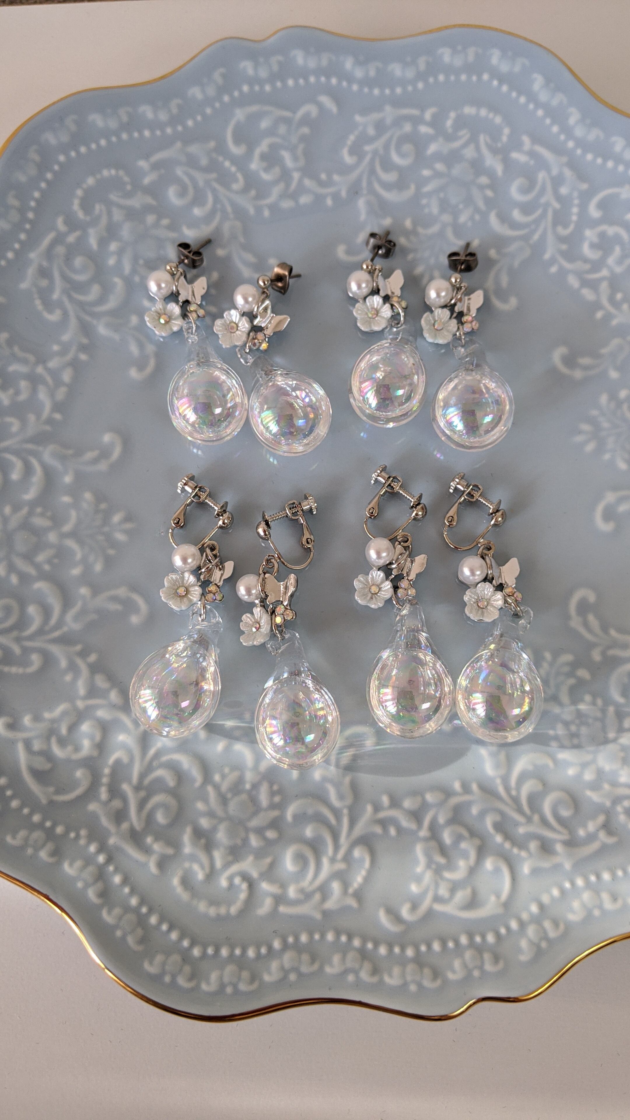 水色のお花と蝶がかわいいピアス/イヤリングです❁